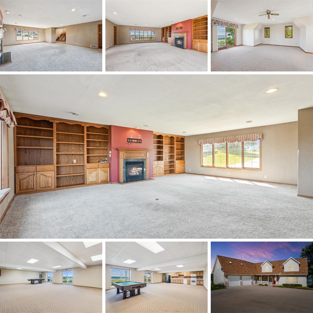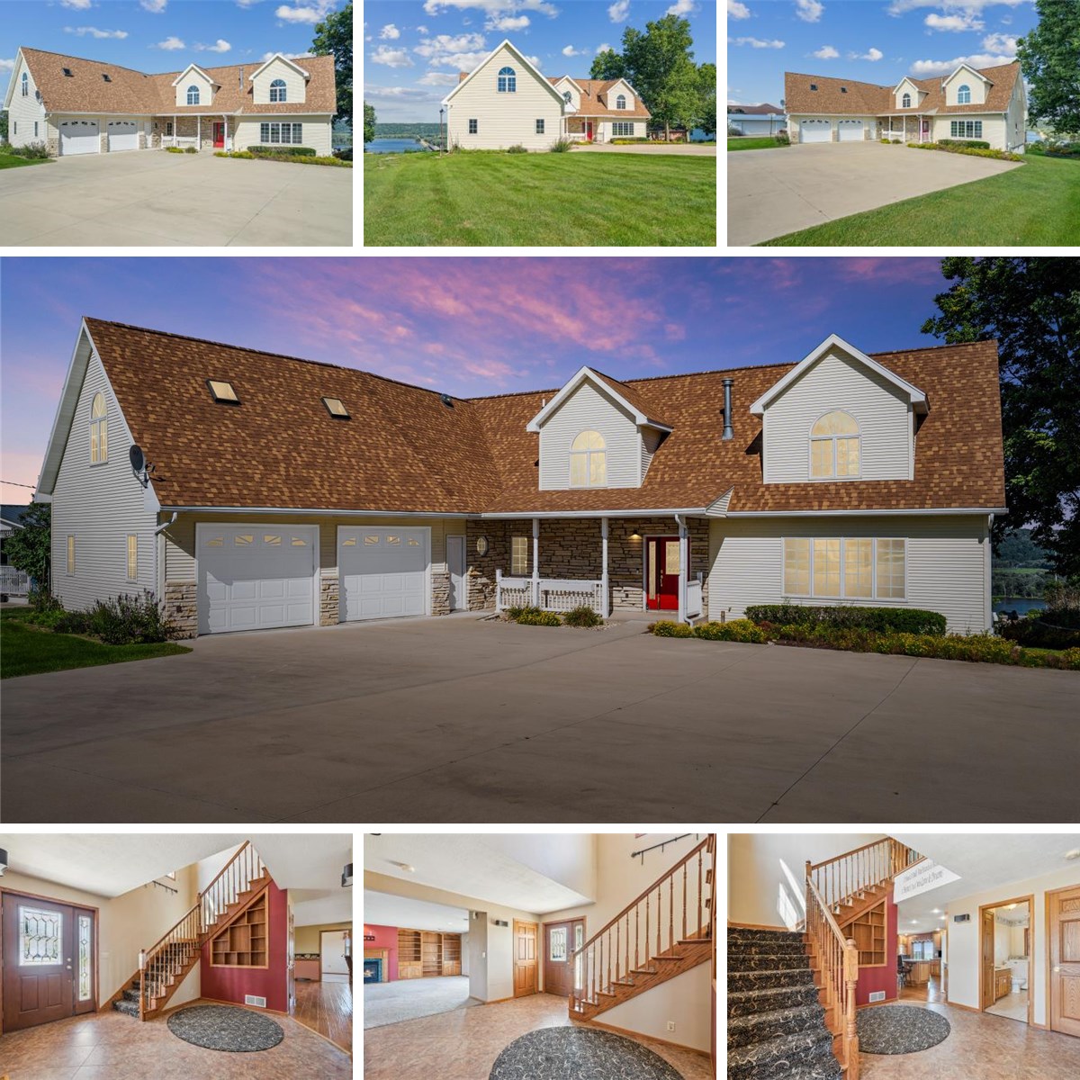Incredible River & Town Views in Guttenberg!! This home sits high above Guttenberg with views of the Mississippi and the town that you dont find often. Whether youre on the deck, in the kitchen, the living room, or any of the bedrooms, youll be taking in the scenery. On the main floor, youll find a welcoming entry with an open staircase, a large living room with fireplace, and a kitchen/dining area that opens to the deck. The main level also includes an en suite bedroom and a half bath with laundry. Upstairs are three more bedrooms, including another en suite with a jetted tub and its own small viewing deckperfect spot to enjoy the setting. The lower level has a huge family room with a kitchenette (this space was once a pool area and still has the pool underneath the floor) plus an office and walk-out to a concrete patio. Along with the attached two-car garage and loft space, theres also a detached two-car garage for your boat, vehicles, or extra storage. Opportunities like this dont come up oftentake a look today and see the views for yourself.