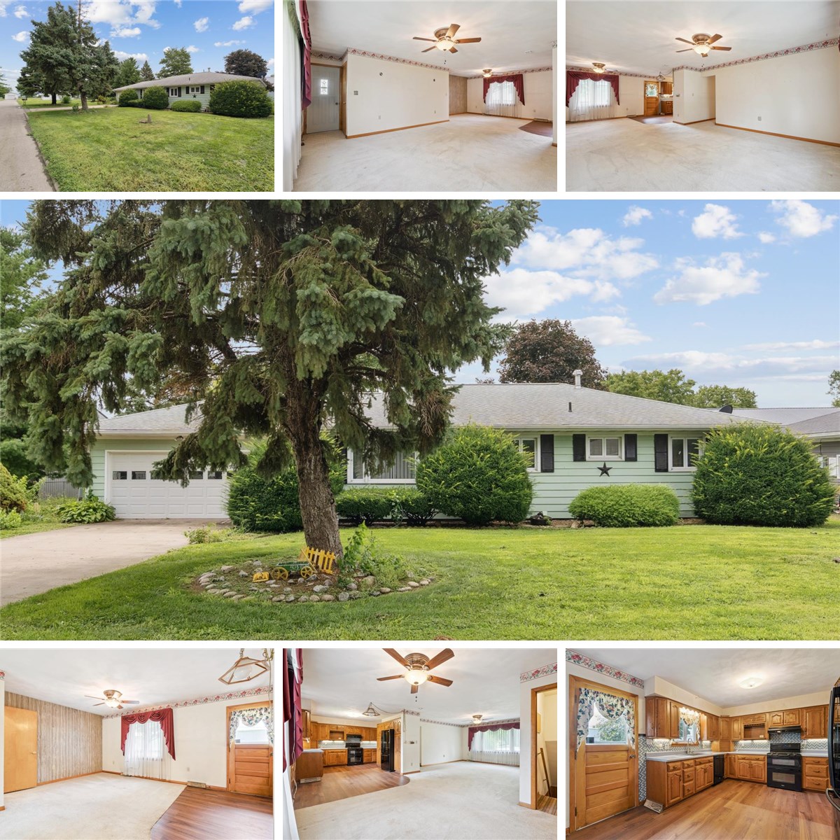DISCOVER SPACIOUS LIVING IN NEW LONDON. This charming ranch-style home sits on three lots totaling approximately .5 acre. This sized lotoffers plenty of space for outdoor entertaining, gardening, or future expansion. Located near the end of a dead-end street. Step inside to find a comfortable layoutwith three main-floor bedrooms, cozy carpeted living spaces, and a shared half bath between two of the bedrooms. The full 3/4 bath features a walk-in shower andsingle-basin vanity. The kitchen boasts newer flooring, ample cabinetry, and comes equipped with a stove, refrigerator, and dishwasher. Main-floor laundry. Downstairs, enjoy additional living space with a kitchenette (featuring stove, refrigerator, sink, and cabinetry), a non-conforming fourth bedroom. The basement ALSO includes an additional washer and dryer. 40-gallon gas water heater and a gas furnace. All appliances stay. Outside, enjoy summer evenings on the deck, and take advantage of the spacious two-car garage. This property offers comfort, space, and flexibility—ready for your personal touch! Selling AS IS.