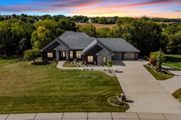 Nestled in the Castle Hill Subdivision of Dyersville, this magnificent all-brick ranch home is a true standout. With over 2, 300 finished square feet on the main floor & an additional 1, 800 square feet of beautifully finished lower-level space, this custom-built residence offers both luxury & comfort on a generous 1.22-acre lot. As you step inside, a grand foyer with 11-foot ceilings welcomes you into a space where elegance meets functionality. The open-concept kitchen is a chefs dream, featuring a large island with seating, quartz countertops, abundant cabinetry, & a walk-in pantry. The adjoining dining space is filled with natural light from three walls of windows & offers direct access to your expansive concrete deck, perfect for outdoor dining or relaxing on the covered patio below. The primary suite is a private retreat, complete with a walk-in closet, custom cabinet storage, a tiled shower, & a double vanity. With a split-wing floor plan, two additional bedrooms & another full bath are located on the opposite side of the home. Just off the garage entry, a custom locker system provides stylish organization, conveniently located near the laundry room which features a large storage closet. The heated three-car garage on the main level, along with an additional capped garage underneath accessible via its own driveway, provides ample space for vehicles & storage. Meanwhile, the lower level offers a large living area with built-in stone accents, two bedrooms, a flex room or office space, a full bathroom, & a large storage room. There's even a workshop or workout area with garage access. Experience quality craftsmanship, smart design, & spacious living, all in one incredible property.