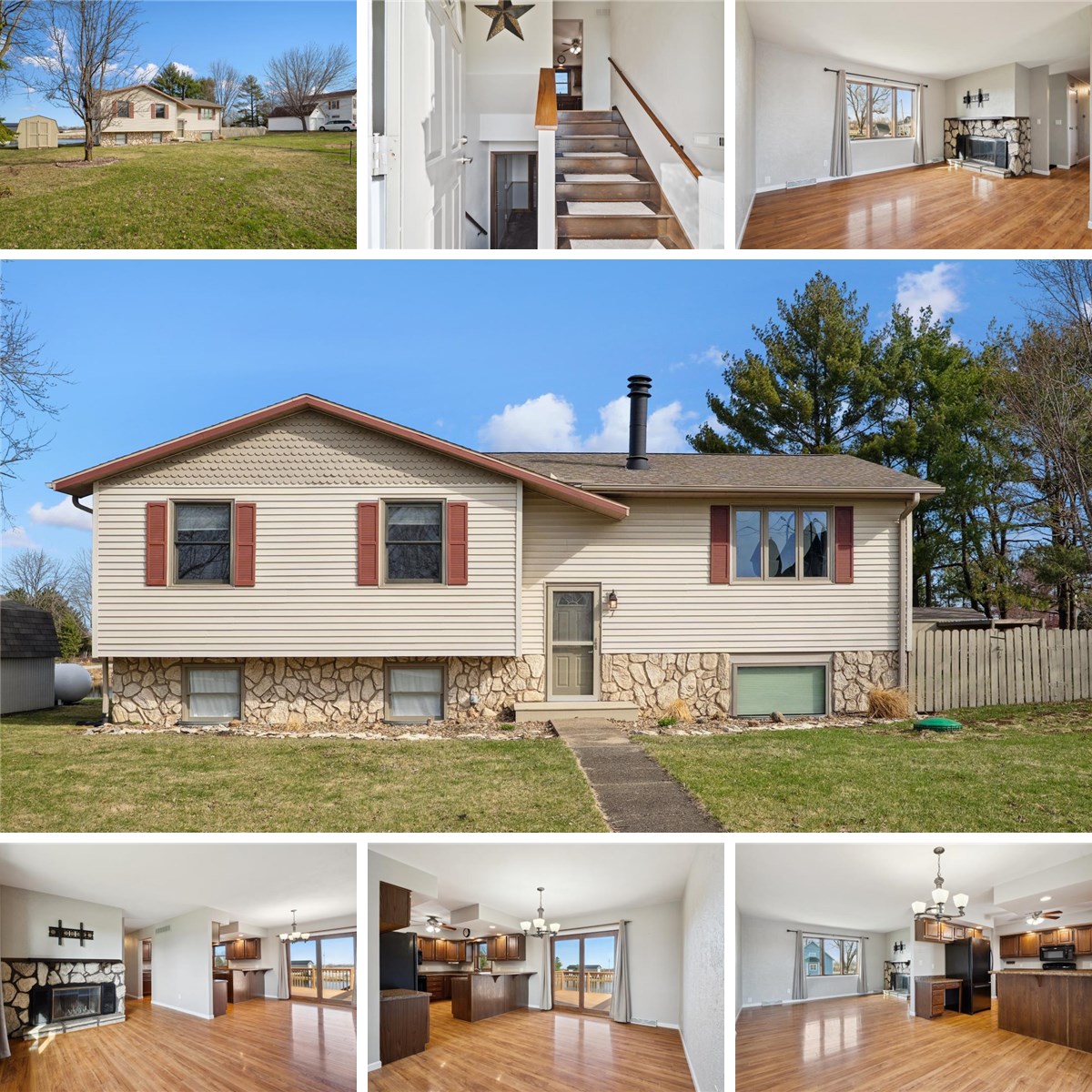 This charming 3-bedroom, 1.5-bath split-level home is located in a peaceful subdivision just outside of town, offering easy highway access. The property features a spacious fenced-in yard with raised garden beds, perfect for gardening enthusiasts, and a picturesque shared pond stocked with fish, visible from the main level. Inside, you'll find a cozy wood-burning fireplace in the living room, a kitchen with plenty of counter and cabinet space, and generously sized bedrooms, including a primary bedroom with its own half bath. Whether you're relaxing by the pond, gardening, or enjoying the warmth of the fireplace, this home offers a perfect blend of comfort and convenience.
