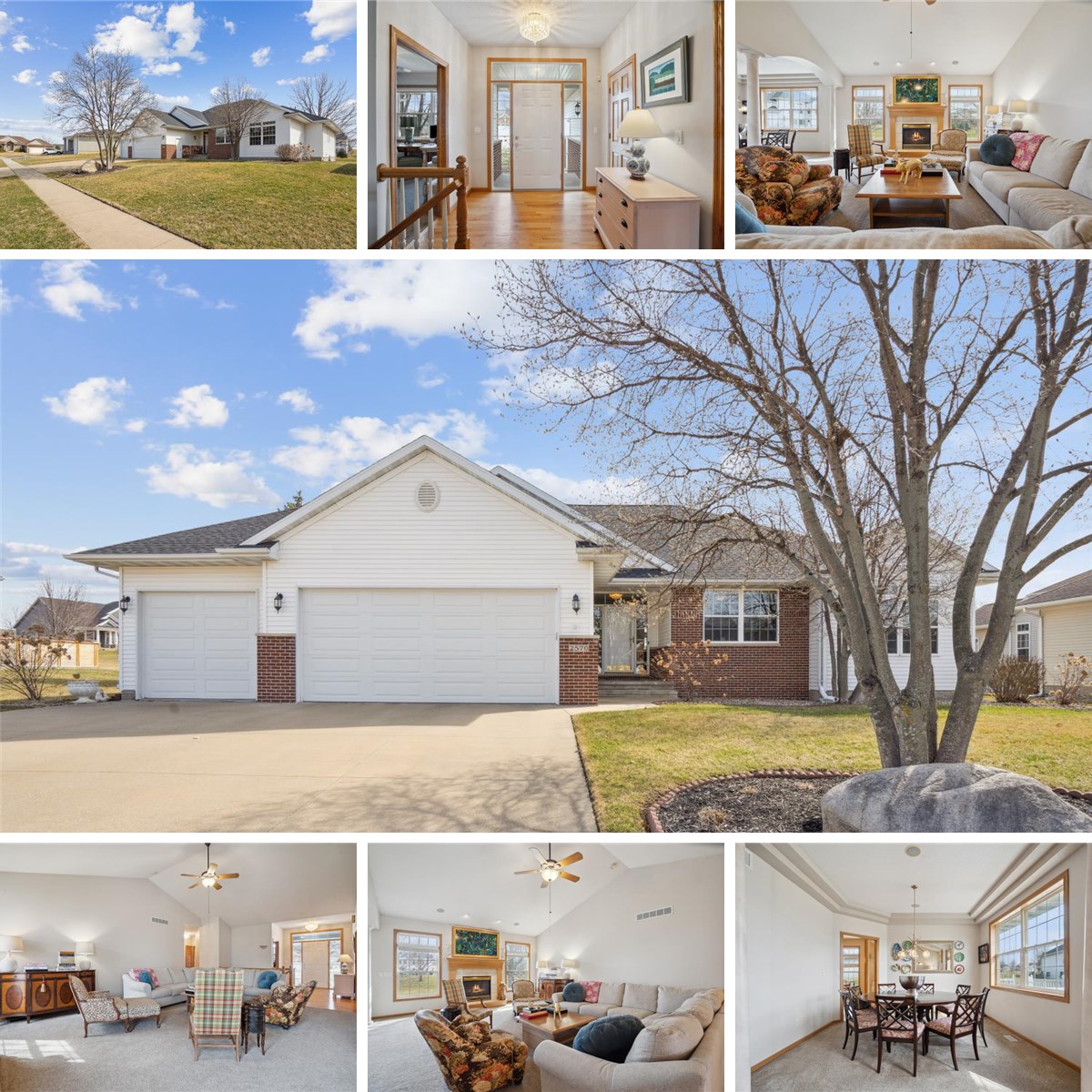 Welcome to this stunning ranch home located near the beautiful Hunters Ridge Golf Course! This spacious home offers a relaxing master suite with a large walk-in closet, jetted tub, and dual vanities. Enjoy cozy nights by the gas fireplace in the vaulted-ceiling hearth room, which flows effortlessly into the formal dining area. The bright and airy eat-in kitchen boasts oak hardwood floors, a pantry, and a breakfast bar, making it perfect for family gatherings. Step into the four-season room or relax on the low-maintenance deck overlooking the updated landscaping. The main floor also features convenient laundry, central vac, and fresh paint. Downstairs, you'll find a large 4th bedroom, full bath, recreation room with a gas fireplace, and a private multi-purpose room. Plus, enjoy the peace of mind with new garage doors, a new water heater, and a water softener. A one year home warrranty is also included for Buyers peace of mind. Don’t miss out—schedule your showing today and make this dream home yours!