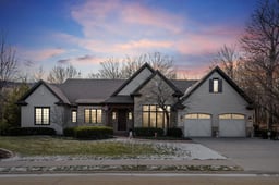 LUXURY MEETS COMFORT in this impeccably designed walk out ranch offering refined finishes, generous living spaces, and a serene wooded backdrop. Enjoy privacy and low maintenance living with landscaping and snow removal included through the HOA, allowing you to focus on living, not upkeep.From the moment you step inside, you will appreciate the soaring 10 to 12 ft ceilings, double layered crown molding, and coffered ceilings in the office, creating an elevated architectural presence throughout. Engineered hardwood floors flow across most of the main level, complemented by tile in the kitchen. The inviting living room is centered around a gas fireplace, ideal for both everyday comfort and entertaining. The chef inspired kitchen is designed to impress, featuring granite countertops, custom cabinetry with soft close doors and full extension drawers, pull out shelving, under cabinet lighting, pot filler, prep sink, breakfast bar, and a spacious island. High end appliances showcasing the integrated refrigerator and a butler's pantry with additional cabinet and counter space, making this kitchen as functional as it is beautiful. The main level primary suite offers a private retreat with generous proportions and a spa like atmosphere. Step out onto the private deck overlooking the landscaped and fenced backyard with peaceful wooded views, an ideal setting for morning coffee or evening relaxation. The finished walk out lower level expands the living space with a second fireplace, recreation room, two bedrooms each with access to full bathrooms. A secondary kitchenette that features a custom antique bar with dishwasher, beverage refrigerator, and prep sink that adds flexibility for guests, entertaining, or extended living arrangements. Schedule your private showing today and discover why this home stands apart from the others on your list.