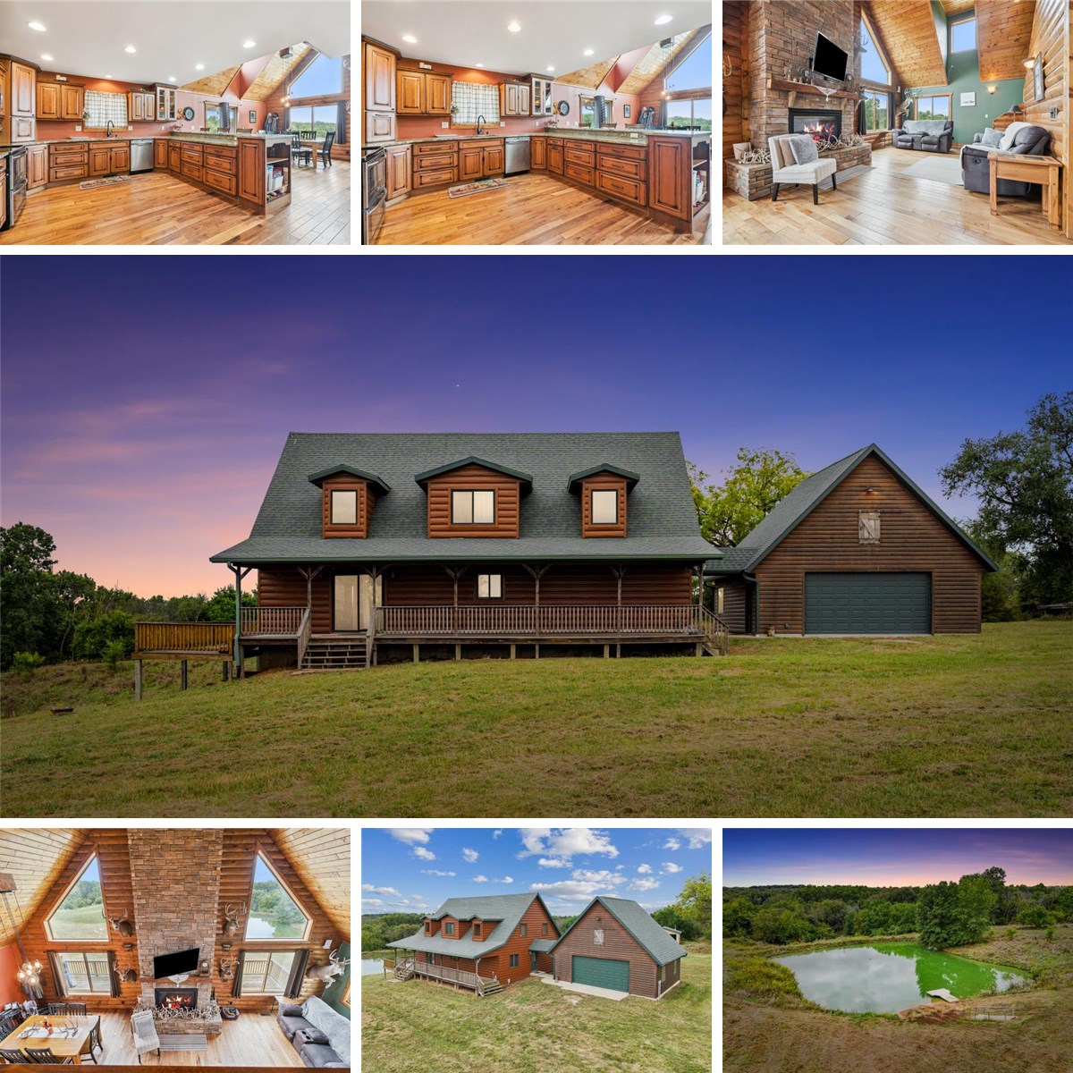 Nestled atop this gorgeous property is a stunning custom-built home with breathtaking views. The exterior boasts two double car insulated detached garages, a welcoming front-covered porch, a tasteful breezeway, stamped concrete patio, a spacious deck, and a serene pond with a dock just steps from the house. Inside, you’ll find the perfect blend of luxury and comfort. The great room is a showstopper with its vaulted ceilings, massive stone gas fireplace, expansive windows, and rich walnut hardwood floors. The kitchen is equally impressive, featuring custom walnut cabinetry, granite countertops, stainless steel appliances, and a bar for extra seating that opens to the great room’s stunning view. The main level also includes two spacious bedrooms with large closets, a full bathroom, and a convenient mudroom/laundry area. Upstairs, the massive primary suite offers privacy, incredible views, a generous bathroom, and a walk-in closet. The fully finished walk-out basement adds even more living space with a family room, another full bathroom, a non-conforming bedroom, and ample storage. Kept nice and comfortable with spray foam insulation and geothermal zone-controlled heating & cooling. Don’t let this one pass you by!