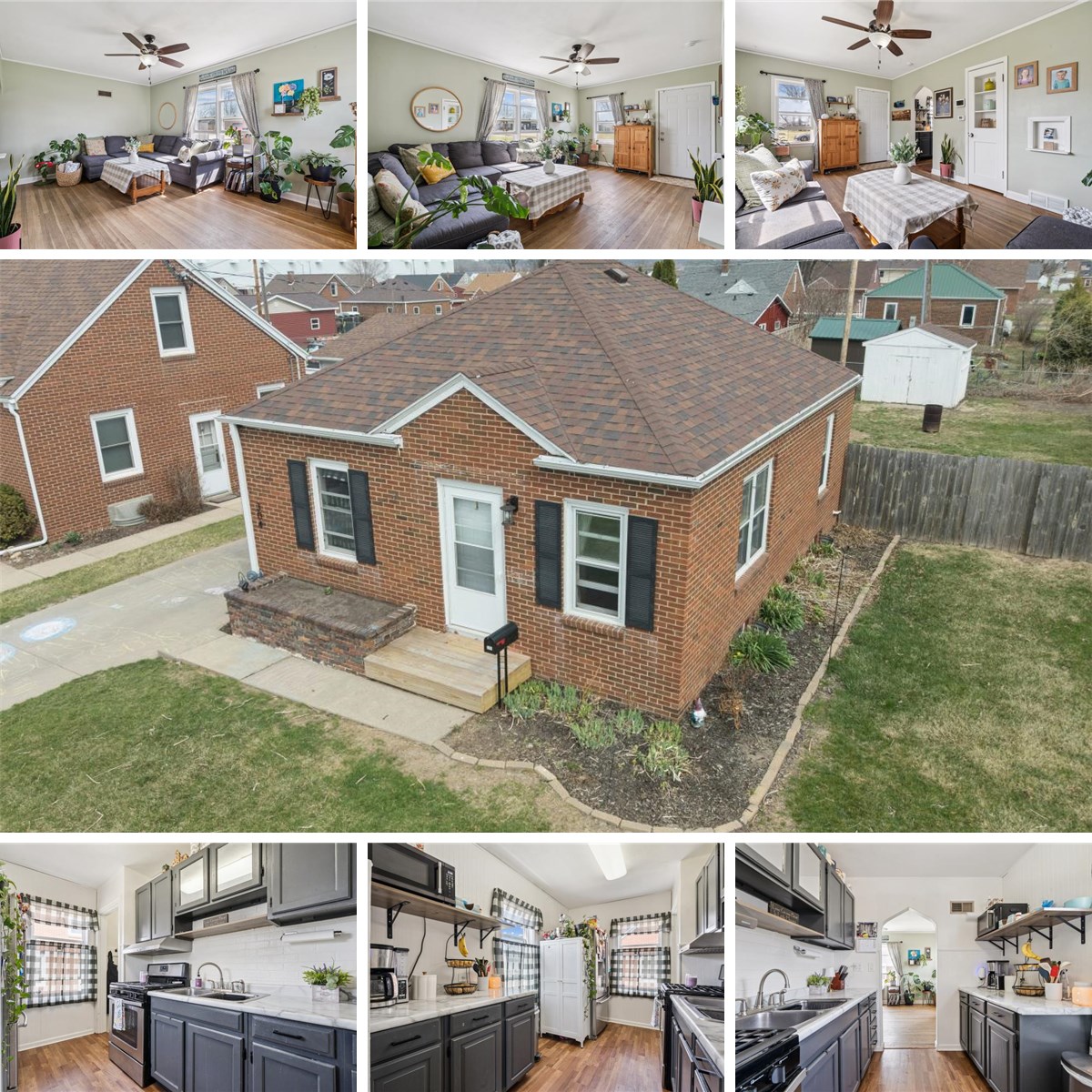 Cute, charming, and move in ready! This solid brick home features many desirable upgrades such as a newer roof (2018) newer furnace (2016), newer AC (2018), new electrical service (2018), updated windows, doors, and more! The main floor is host to the living room and two main floor bedrooms, all boasting beautiful hardwood floors, and an updated full bathroom, and a lovely kitchen with all appliances included. The finished lower level offers an additional living space, a half bath, and a potential 3rd bedroom. The back yard is fully fenced-in and has a concrete patio, perfect for your summer BBQs! Call today to see this adorable home!
