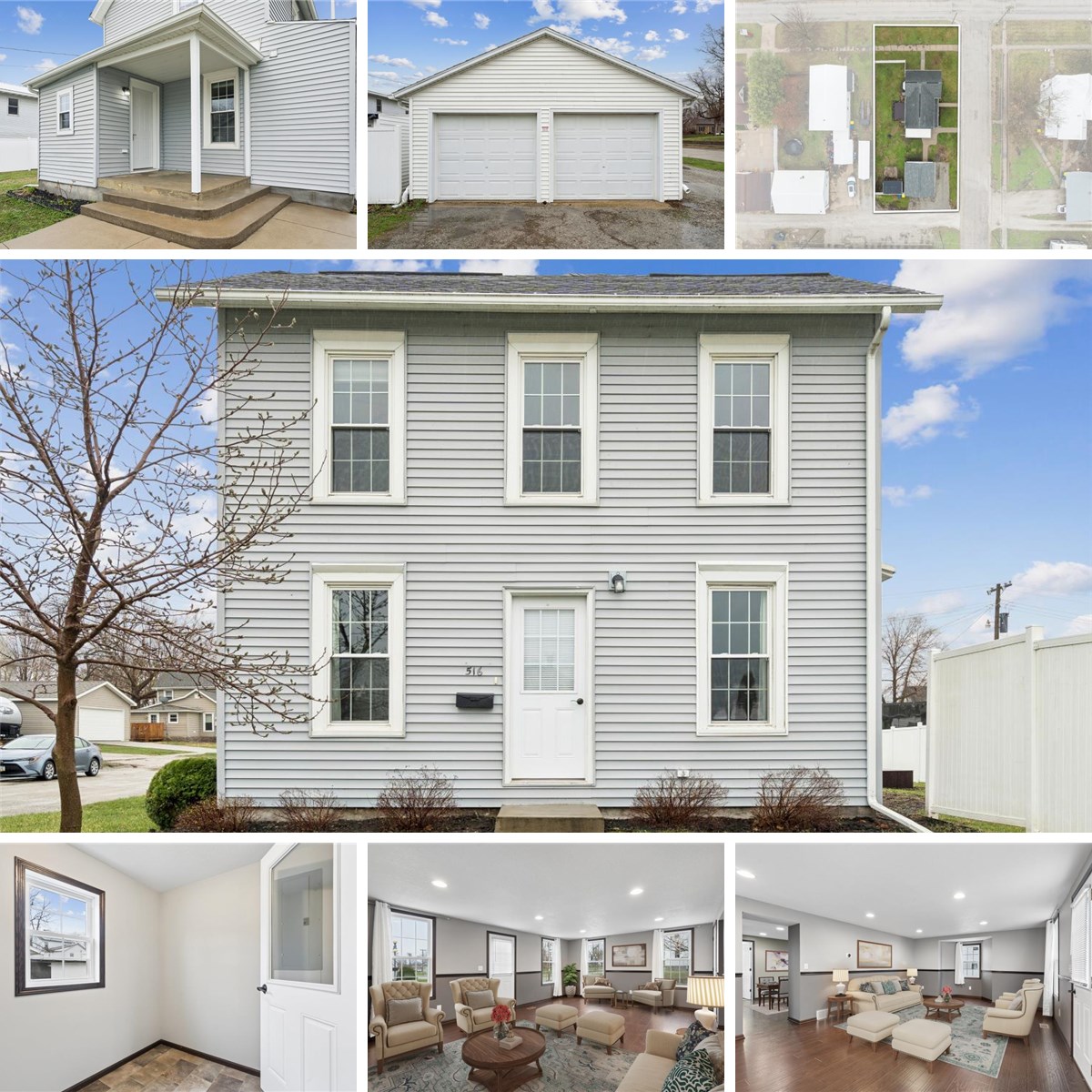 Charming move-in ready 3-bedroom, 2-bathroom home situated on a corner lot with great curb appeal within walking distance of beautiful Downtown Vinton. This home features a spacious living room, a functional kitchen, and a formal dining area with access to a maintenance-free deck and partially fenced yard—perfect for relaxing or entertaining. The main floor also includes a convenient laundry room with a full bath. Upstairs offers three bedrooms, including two generously sized rooms, along with a second full bath. The basement provides excellent storage space, plus an additional shed for your extras. The big 2-car garage has electric heat and air-conditioning plus a workbench area—ideal for projects or hobbies. Professionally cleaned and well maintained, this home also features a lovely front porch and attractive landscaping. Ready for its next owner! **Some photos virtually enhanced.**