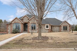 finished lower level provides exceptional additional living space, including a huge family room with a gas fireplace, two more bedrooms connected by a Jack-and-Jill bathroom, a game or hobby room area, and a separate room ideal for a home gym or workout space. The exterior showcases beautiful stone and brick accents, along with sidewalks surrounding the home featuring decorative stamped borders, adding both curb appeal and function. Located in a highly desirable area of Dyersville, this home is within walking distance to parks, soccer and baseball fields, pickleball courts, schools, and the hospital, making it easy to enjoy recreation, community activities, and everyday conveniences. With five bedrooms, multiple fireplaces, generous living spaces, and exceptional outdoor entertaining areas, this impressive ranch home is truly a must see.