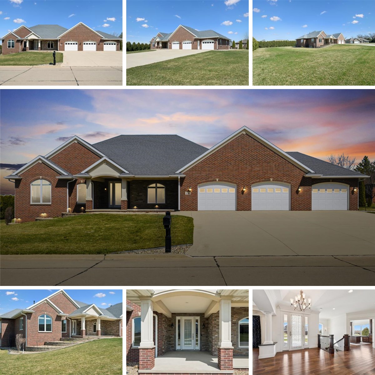 Exquisite custom-built luxury home for sale in Dyersville, Iowa, located on a rare double corner lot in a quiet cul-de-sac. This one-of-a-kind high-end residence offers exceptional craftsmanship, premium finishes, and thoughtful architectural design throughout. From the grand entry with architectural columns to the soaring ceilings and custom millwork, every detail reflects timeless elegance and quality construction.